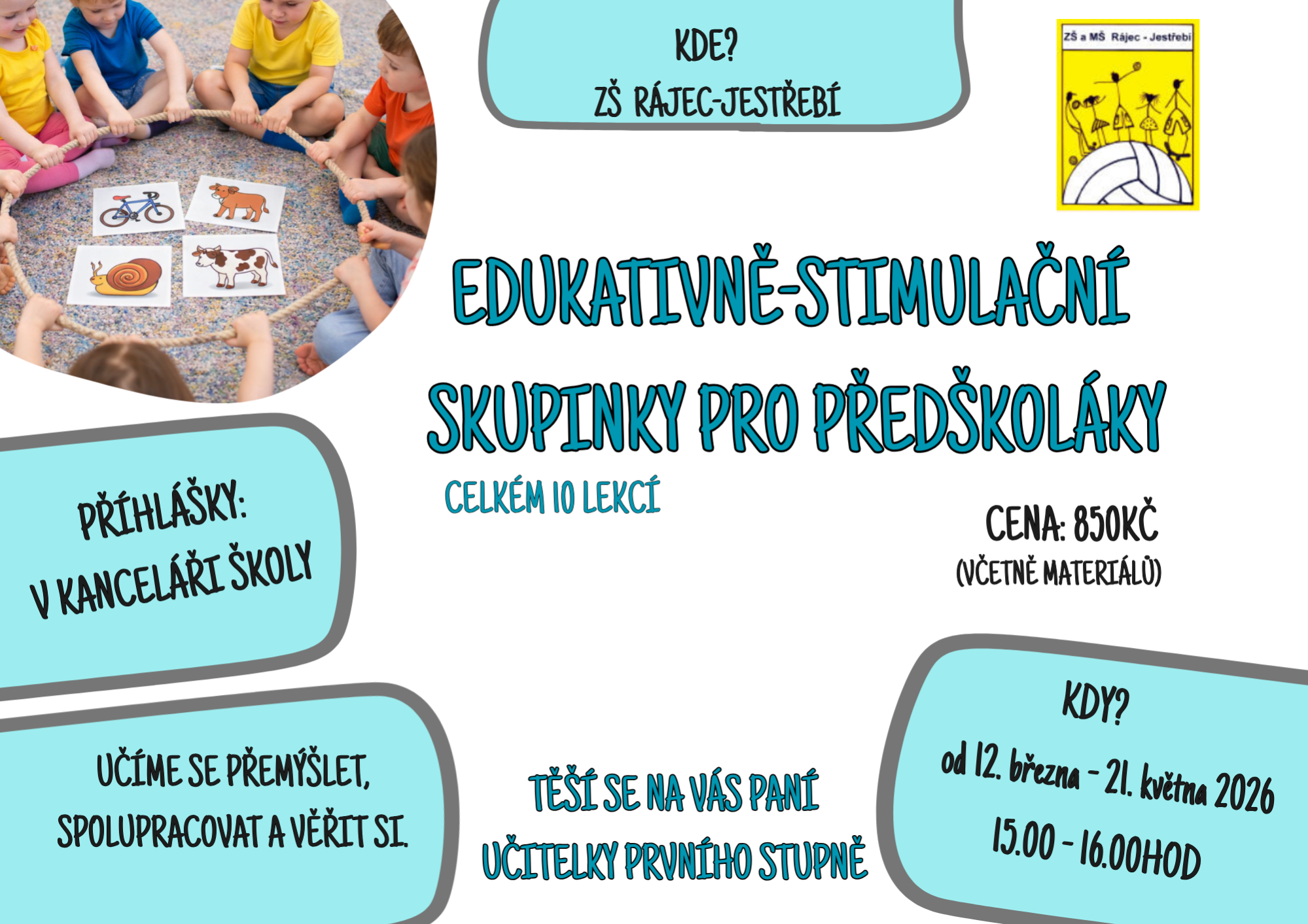 Edukační skupinky povedou paní učitelky z 1.stupně. Cena zahrnuje materiály a další režijní náklady. Čas realizace skupinek bude upřesněn dle počtu zájemců.