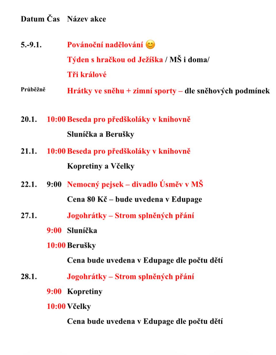 Perníková chaloupka – divadelní představení kino Blansko Cena 120 Kč vstupenka + doprava – bude uvedeno v Edupage Sluníčka + Berušky – odjezd v 9:15 hod. Kopretiny +Včelky – odjezd v 9:45 hod. |